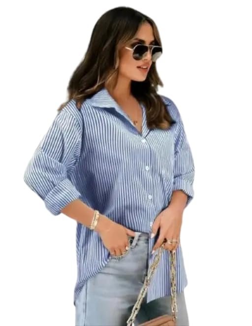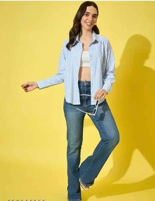 Soft cotton shirt with thin stripes offering a casual yet chic look. Easy to pair with jeans skirts or shorts.